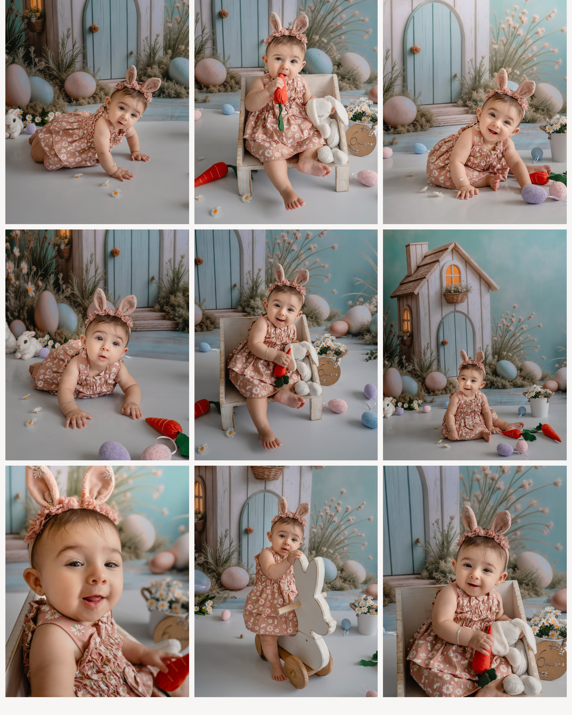 Duração da Sessão: Você terá uma sessão de 1 hora, permitindo mais tempo para criar fotos incríveis e momentos inesquecíveis. Durante esta hora, seu filho(a) terá a oportunidade de explorar e brincar no nosso incrível cenário de Páscoa.